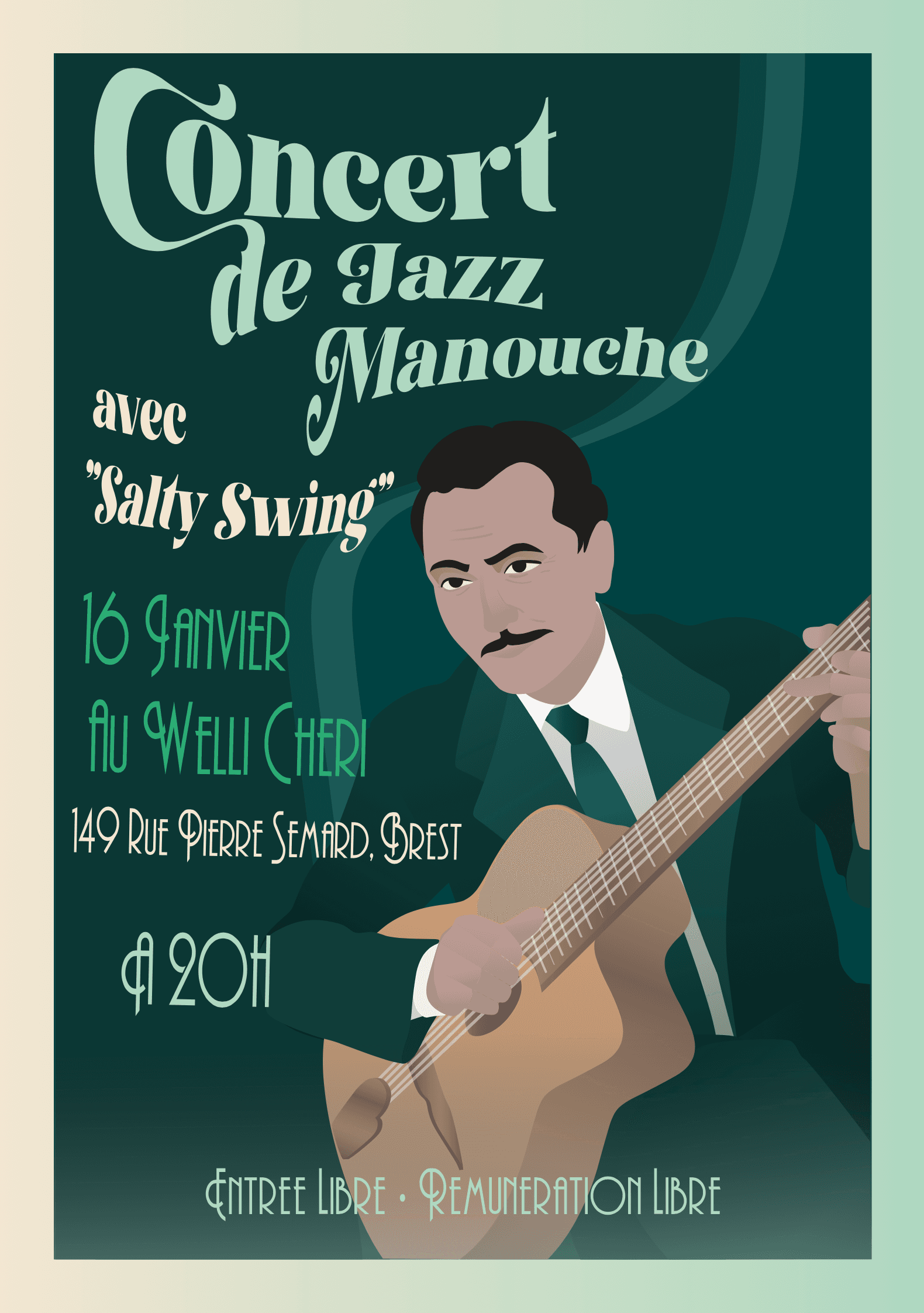A partir de 20h, venez découvrir et écouter le duo brestois de jazz manouche Salty Swing.